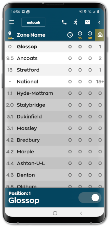 - Press on the vehicle icon to sort the list by the number of vehicles in each zone.